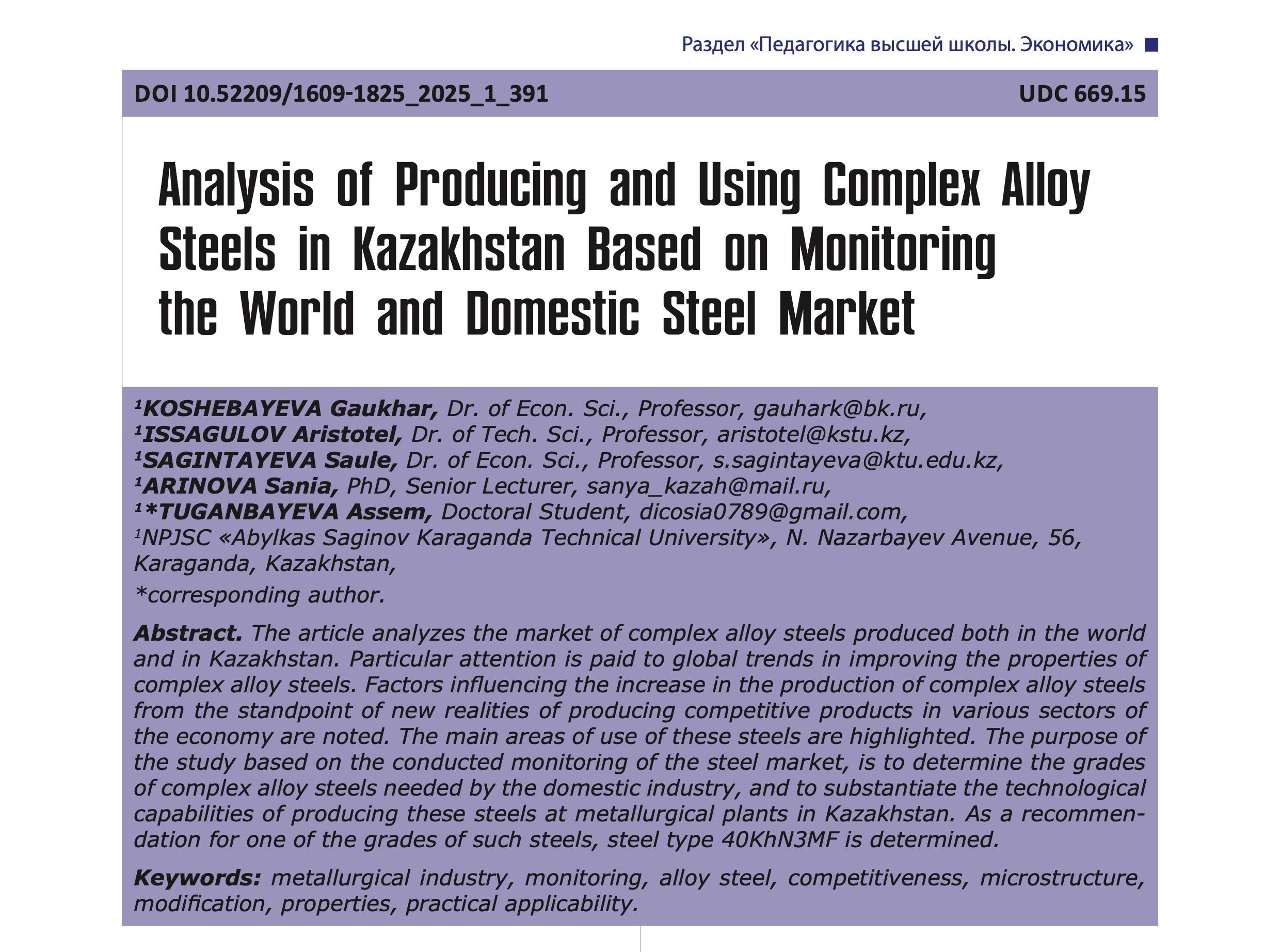 Полная статья: Анализ производства и применения сложнолегированных сталей в Казахстане на основе мониторинга мирового и отечественного рынка стали